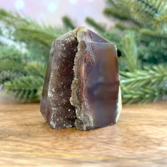 Dark Red Carnelian Crystal Tower with Druzy Cave