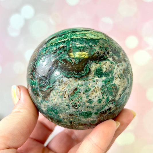 Malachite & Chrysocolla in Druzy Agate 80mm Sphere