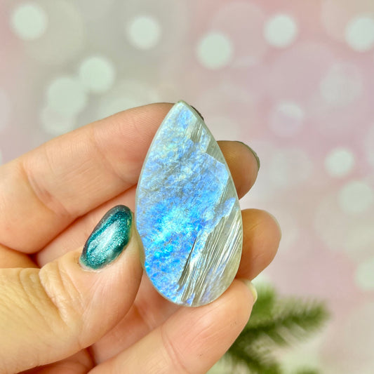 Rainbow Moonstone Crystal Teardrop Cabochon