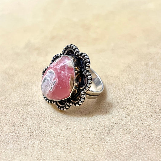 Rhodochrosite Crystal Silver Plated Copper Ring - Size 6.75