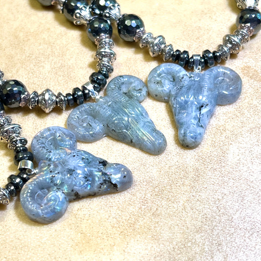 Baphomet in Black - Handmade Labradorite Beaded Necklace