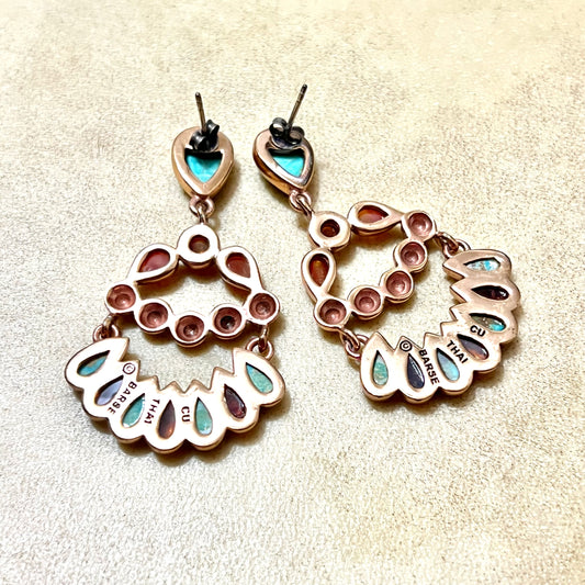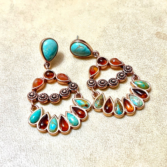 Barse Turquoise & Amber Gold Plated Copper Chandelier Pierced Stud Earrings