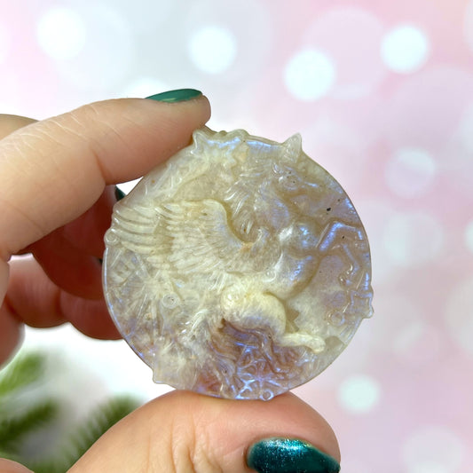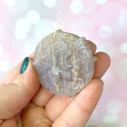 Belomorite (Sunstone in Moonstone) Lion Carved Stone Cabochon