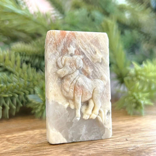 Ares Zodiac Sign Blue Apatite Carved Cabochon
