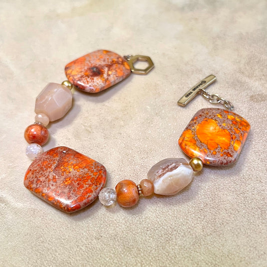 Barse Orange Sea Sediment Jasper & Peach Agate Beaded Bracelet