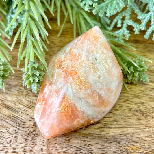 Tiger Sunstone in Moonstone (Belomorite) Carved Stone Cabochon
