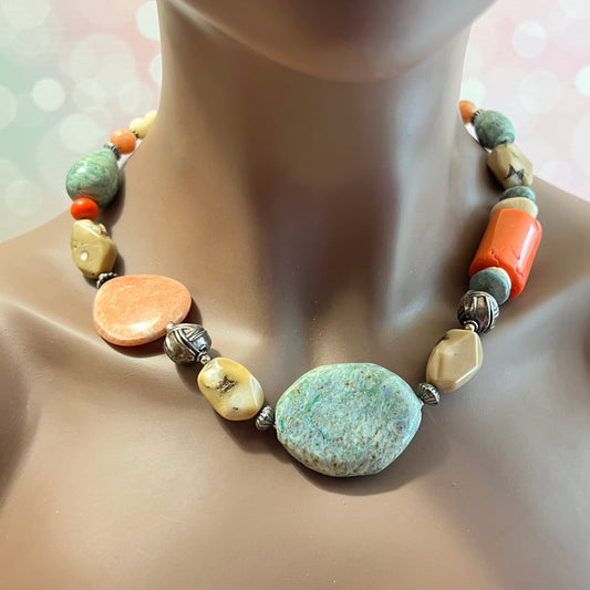 Sun West Sterling Silver Vintage Beaded Necklace with Turquoise & Coral