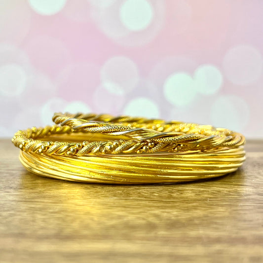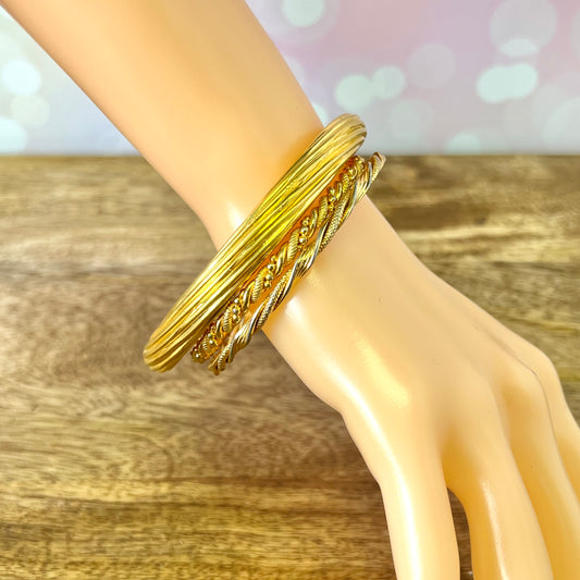 Vintage Bright Gold Tone Bracelet Stack of 3 Woven Textured Bangles