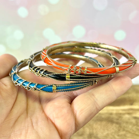 Vintage Colorful Bracelet Stack in Gold Tone with 3 Bangles