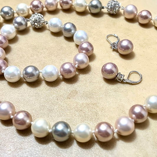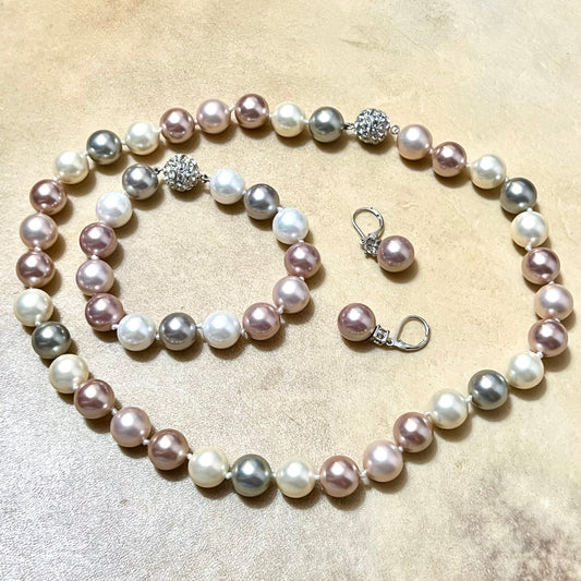 Vintage Imitation Pearl Necklace, Earrings, & Bracelet Set in Sterling Silver