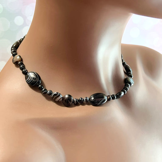 Black Agate Chalcedony Beaded Necklace