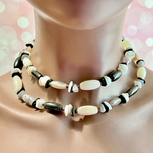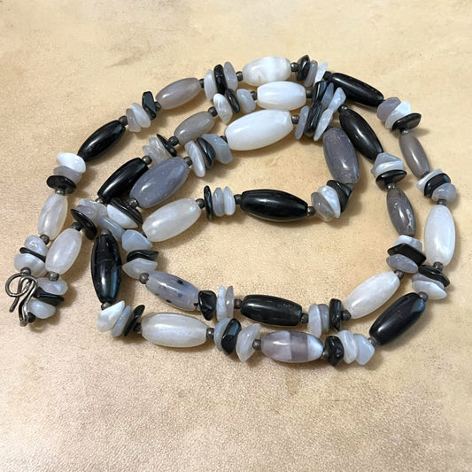 Black & White Agate Long Vintage Beaded Necklace