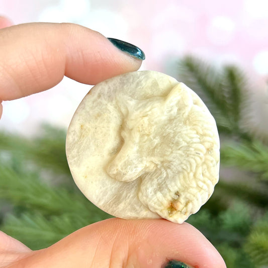 Belomorite Wolf Carved Crystal Cabochon
