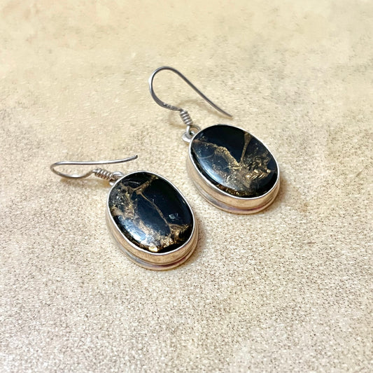 Black Tourmaline Sterling Silver Vintage Pierced Hook Earrings