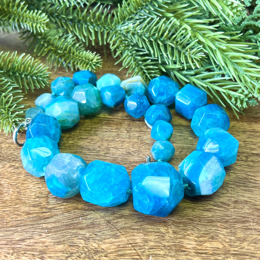 Blue Dyed Agate Beaded Necklace, Hand Knotted with Sterling Silver Clasp by Lucoral