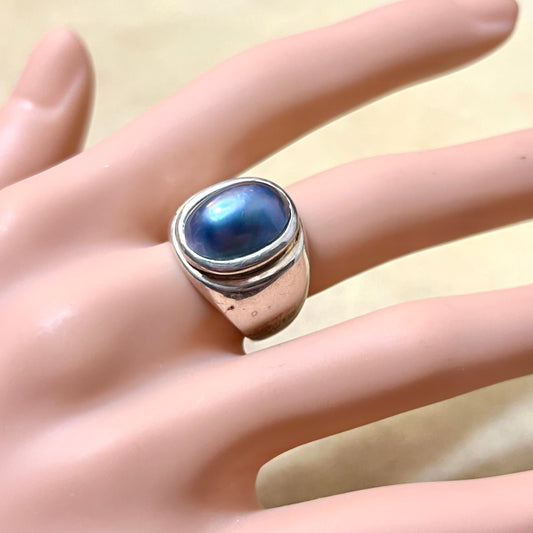 Blue Pearl Sterling Silver Vintage Statement Ring Size 6