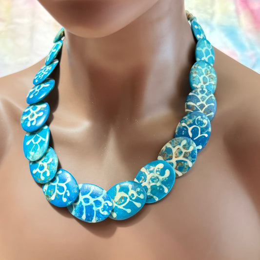 Blue Tagua Nut Vegetable Ivory Dragon Scale Necklace - Vintage