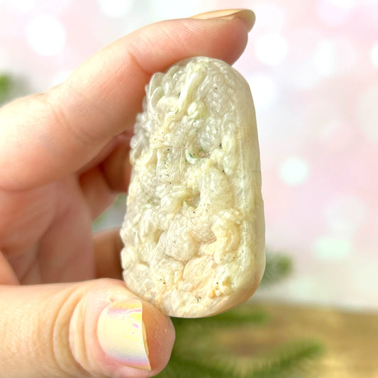 Belomorite Sunstone in Moonstone Bunny Rabbit Carved Crystal Cabochon