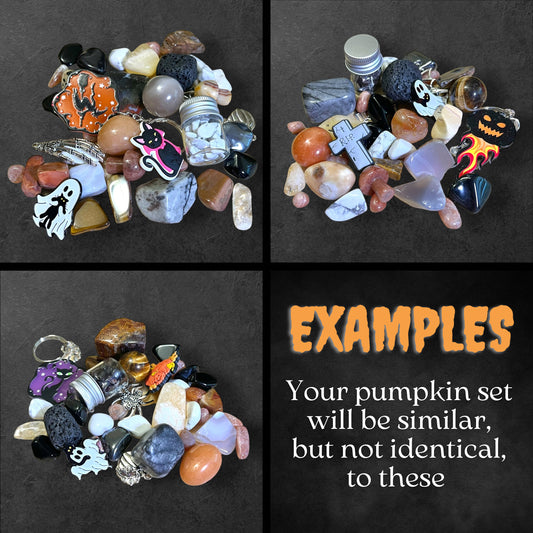 Jack O Lantern Mini Pumpkin Stuffed with Crystals & Halloween Goodies