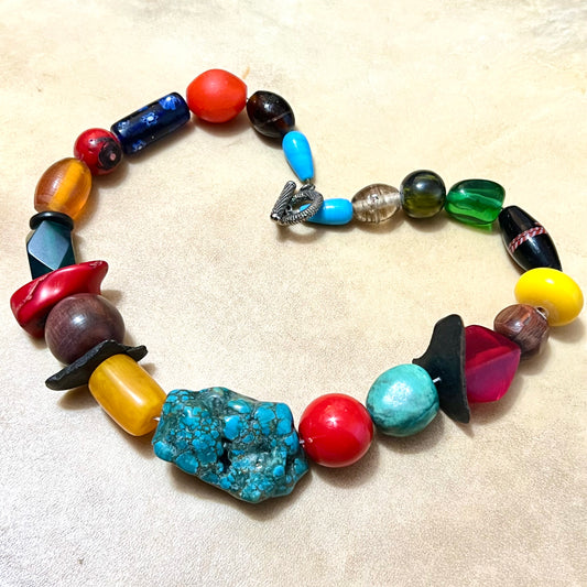 Colorful & Chunky Vintage Beaded Necklace with Glass & Magnesite