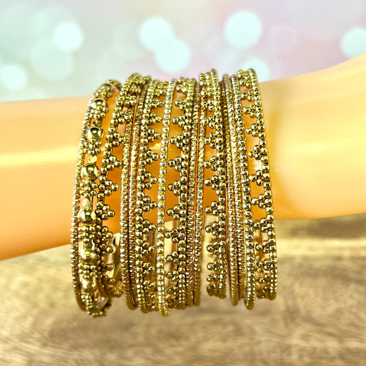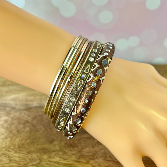 Vintage Mixed Metal Sparkly Bracelet Stack with 13 Bangles