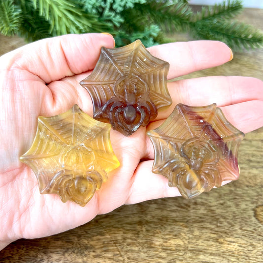 Spiderweb Yellow Fluorite Crystal Carved Cabochon - You get one