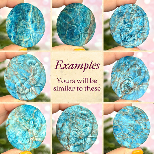 Scorpion Blue Apatite Crystal Carved Cabochon - You get one