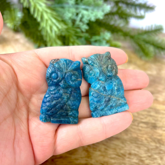 Owl Blue Apatite Crystal Carved Cabochon - You get one
