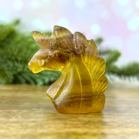 Yellow Fluorite Crystal Unicorn Carved Cabochon