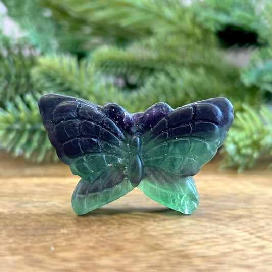 Rainbow Fluorite Butterfly Crystal Carved Cabochon