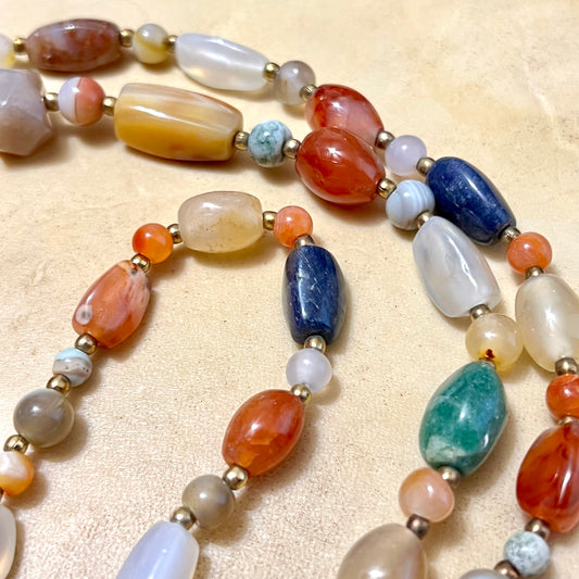 1960s Vintage Beggars Beads Agate & Quartz Necklace