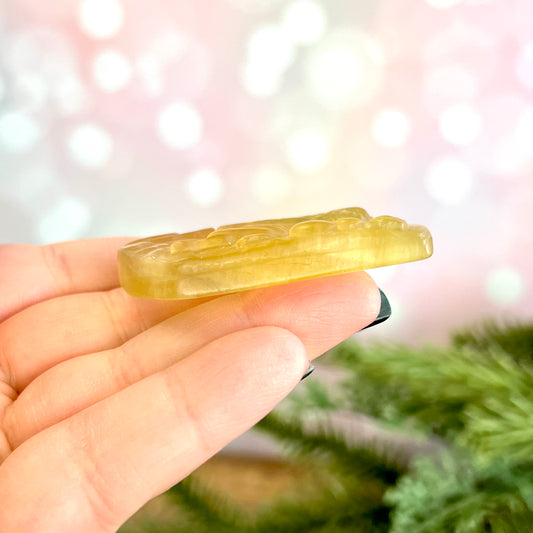 Yellow Fluorite Leopard Carved Crystal Cabochon