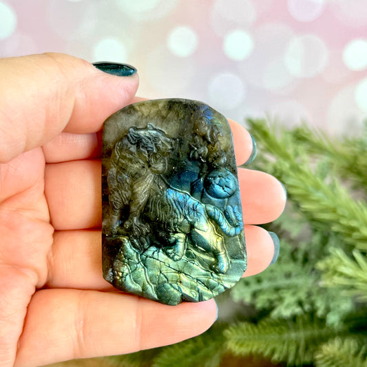Labradorite Crystal Tiger Carved Gemstone Cabochon