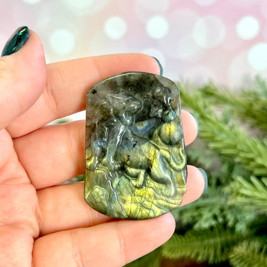 Labradorite Crystal Tiger Carved Stone Cabochon