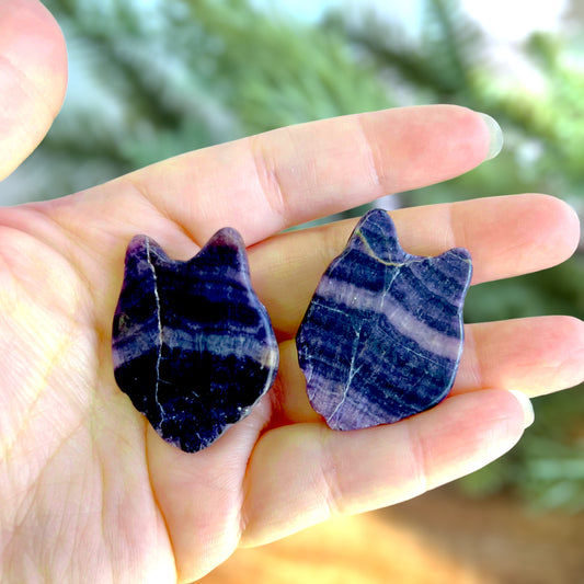 Purple Fluorite Wolf Carved Crystal Cabochon