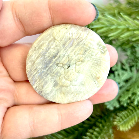 Belomorite (Sunstone in Moonstone) Lion Carved Stone Cabochon