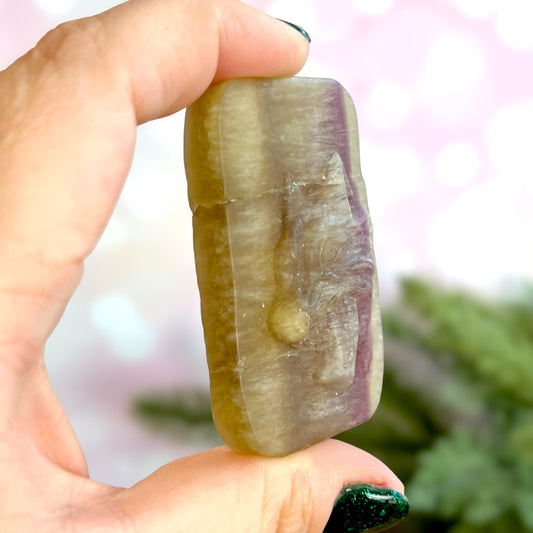 Yellow Fluorite Wolf Rectangle Carved Crystal Cabocho