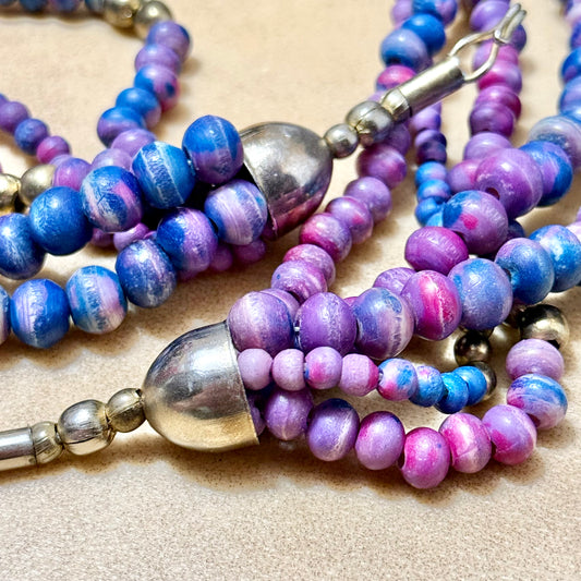 Vintage Purple & Blue Tagua Nut Bodhi Bead Necklace