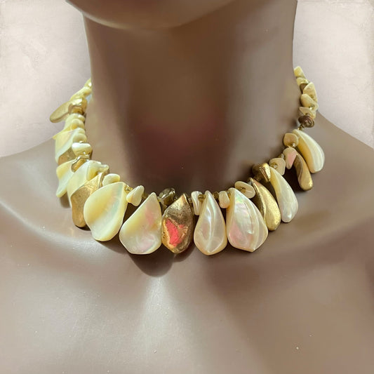 Vintage White & Gold Tone Mother of Pearl Choker Necklace