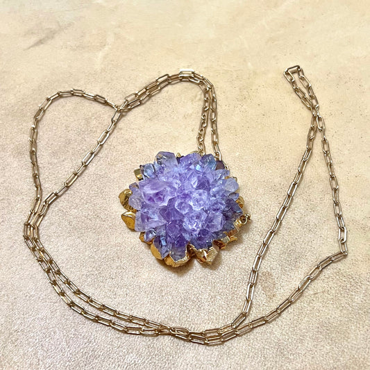 Vintage Amethyst Flower Stalactite Gold Dipped Necklace