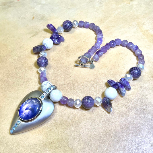 Ouija Planchette Handmade Beaded Amethyst Necklace