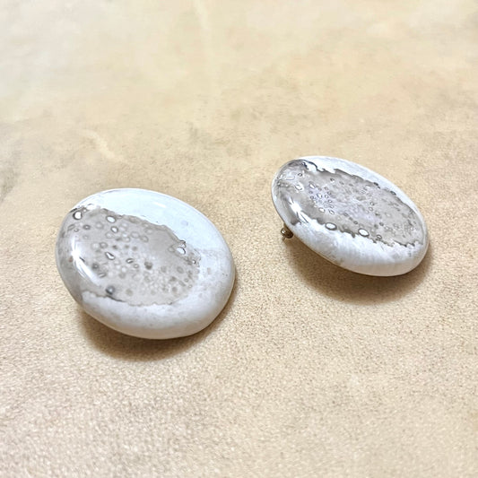 Handmade Ceramic Beige & White Vintage Pierced Stud Earrings
