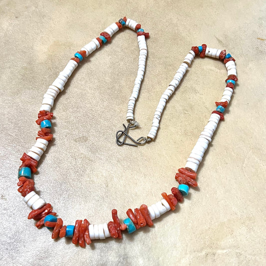 Vintage Native American Style Necklace - Bone, Turquoise, & Coral