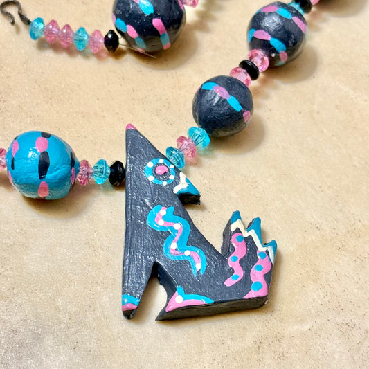 Hand Painted Coyote & Cactus Vintage Clay Southwestern Necklace