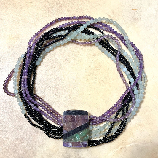 Vintage Karen Sebiri Choker Necklace - Amethyst, Fluorite, Obsidian