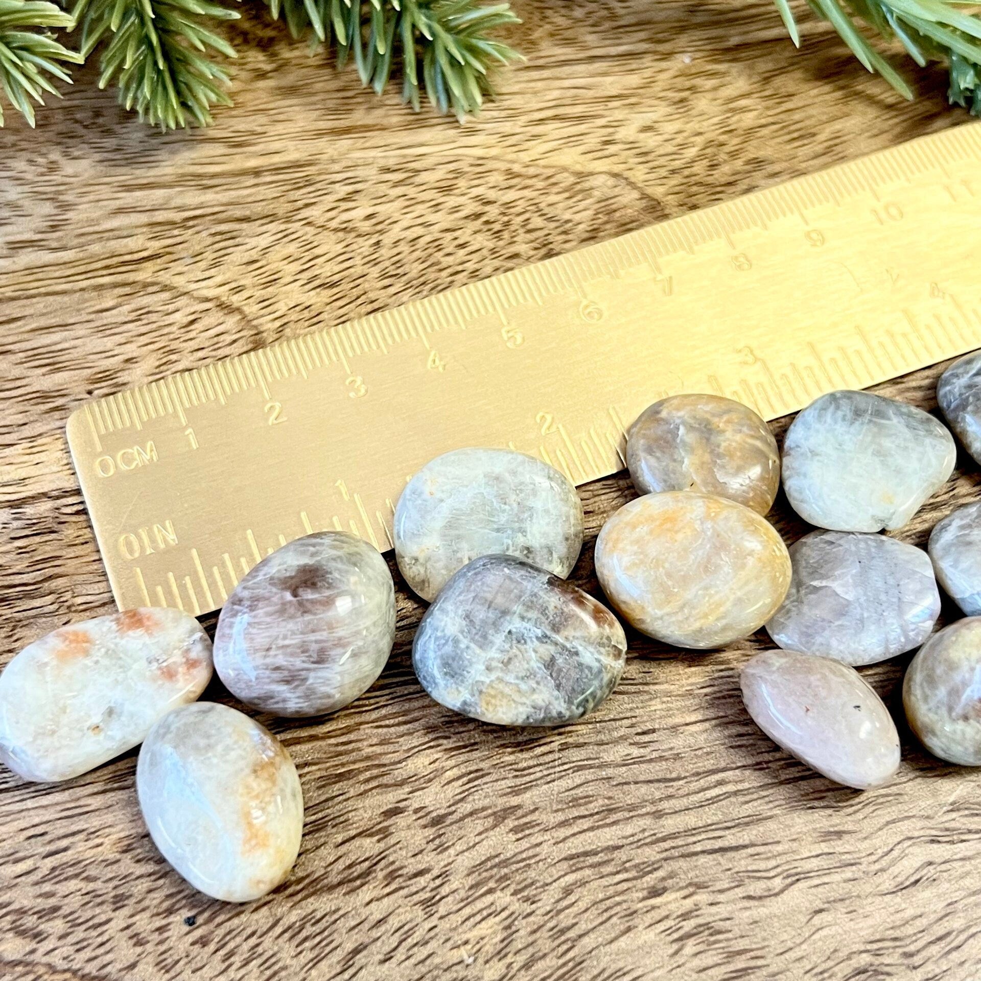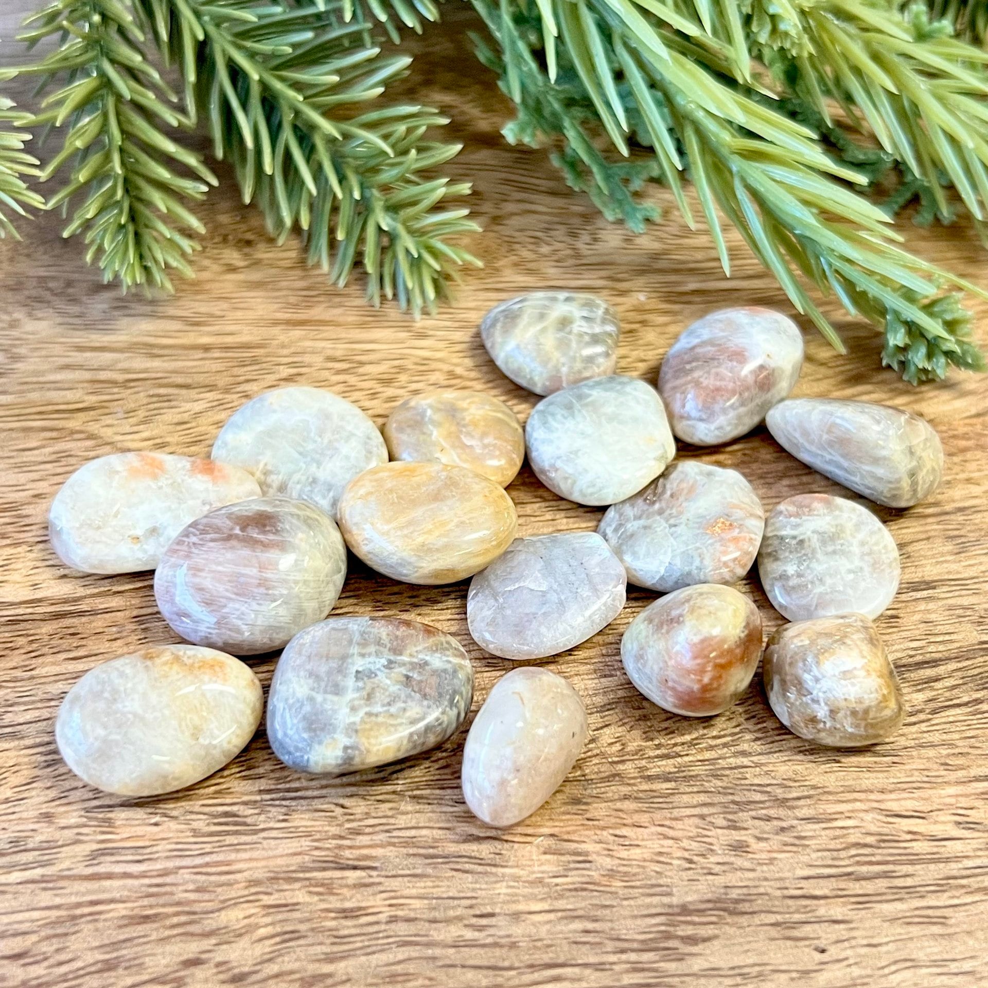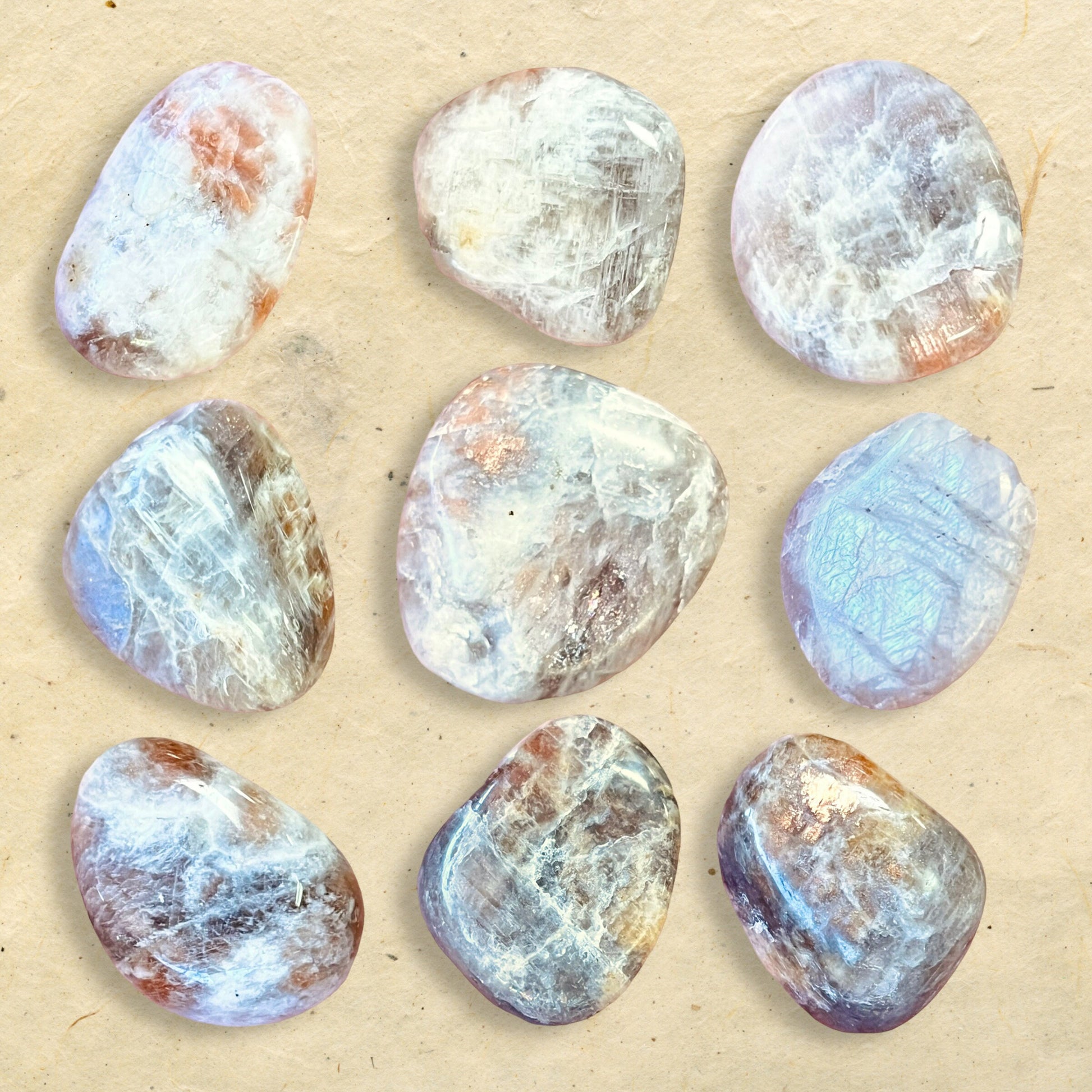 Enhance your spiritual practices with a Sunstone in Moonstone tumbled crystal This combo from this specific location is sometimes called Belomorite. A solid option for enhancing intuition and super-charging your divination practices. This crystal is the perfect choice for balance as it combines forces: Sun & Moon; Feminine & Masculine; Yin & Yang.