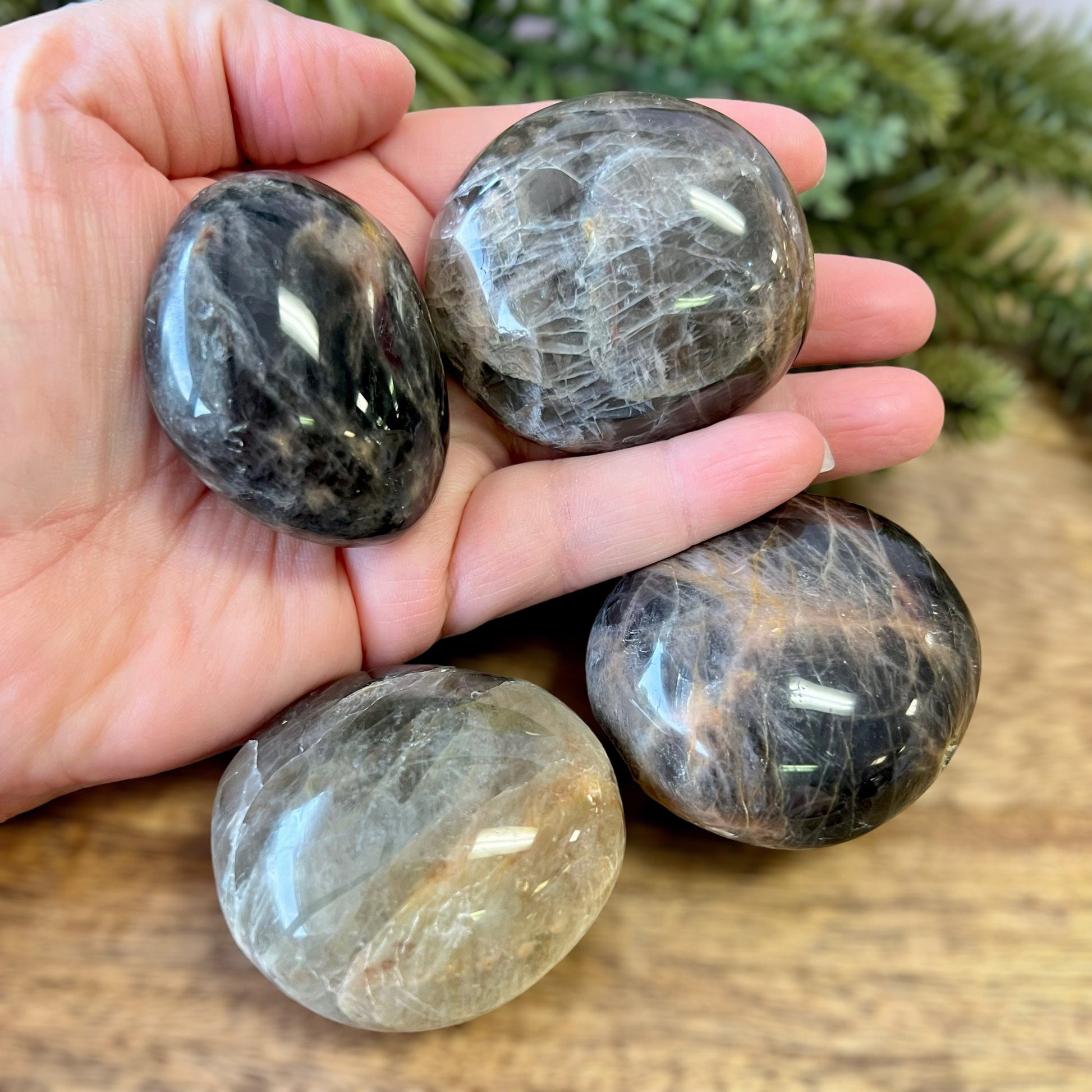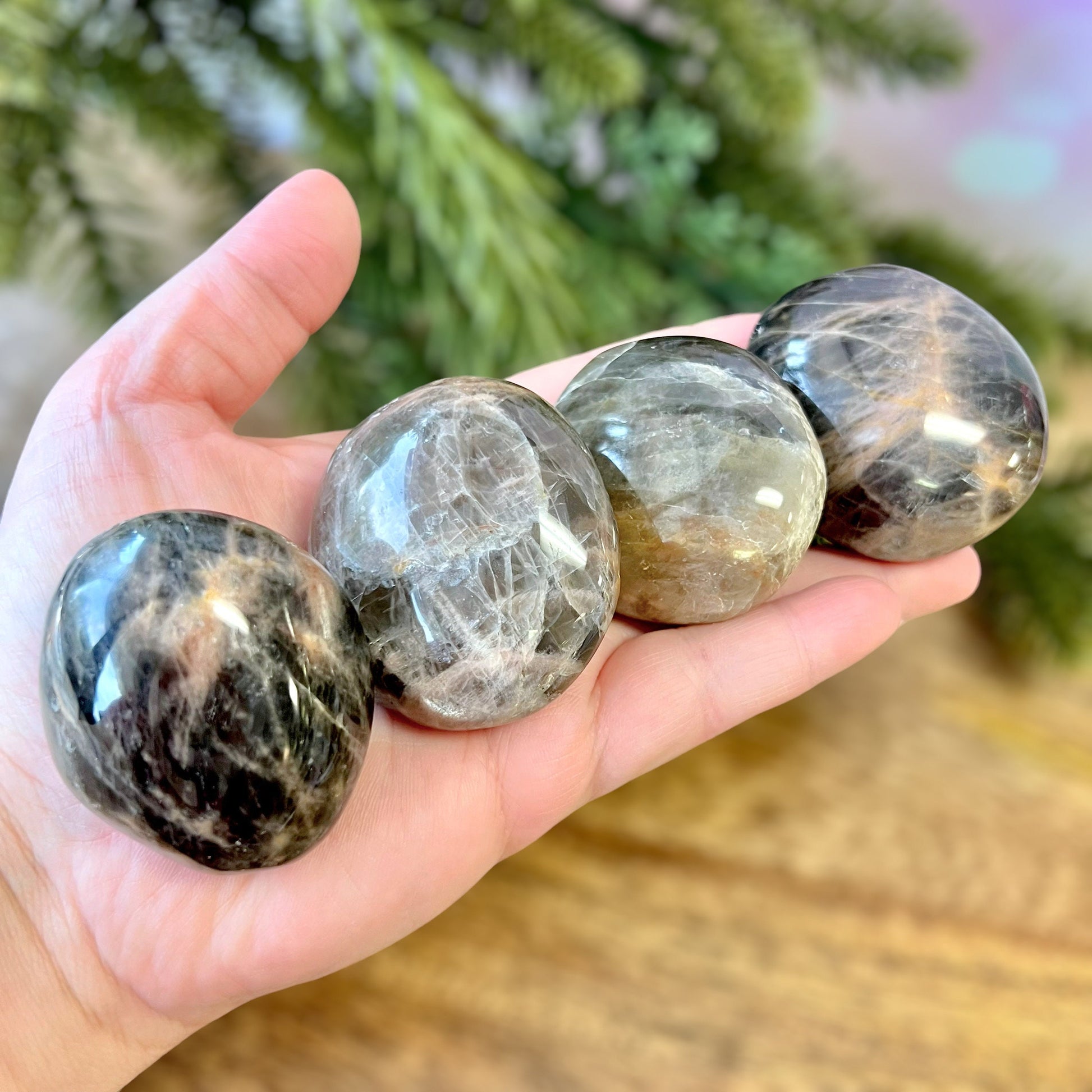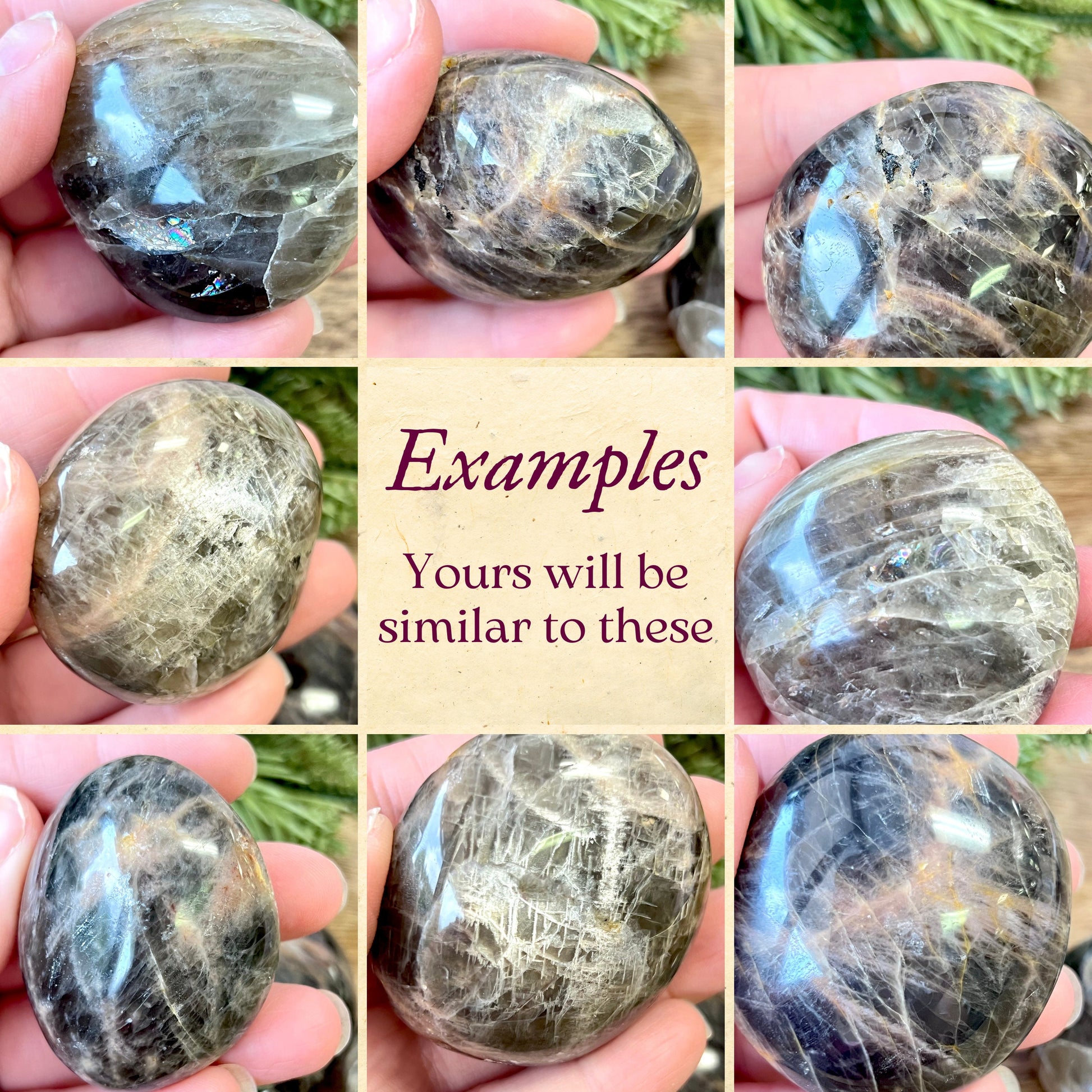 Black Moonstone Palm Stone Tumbled Crystal - You get one