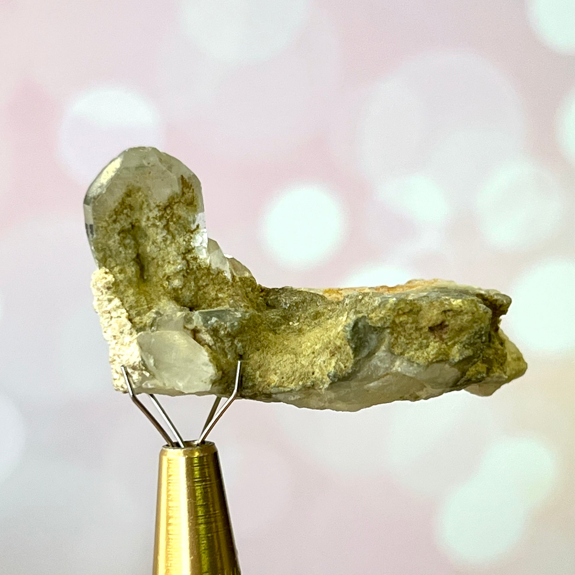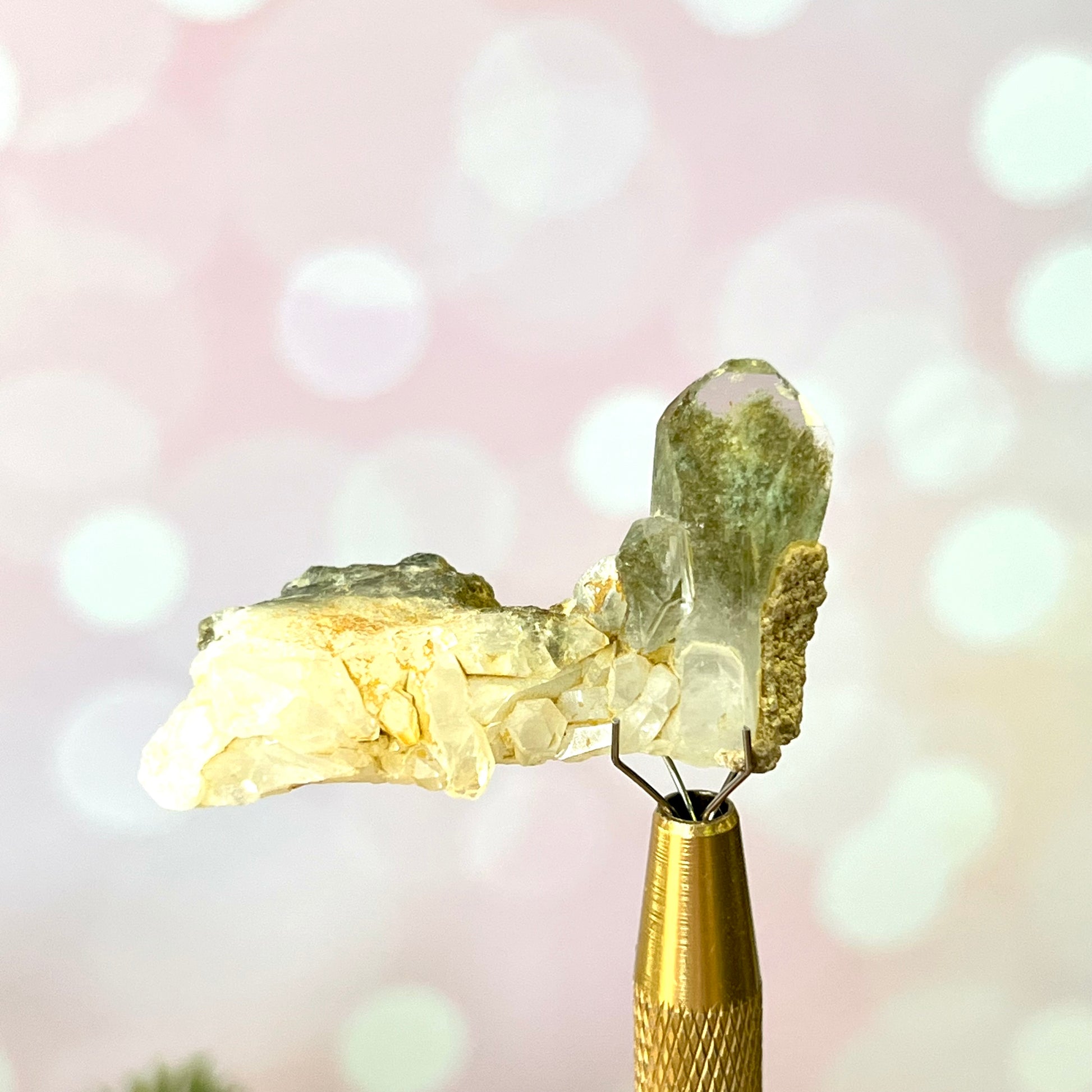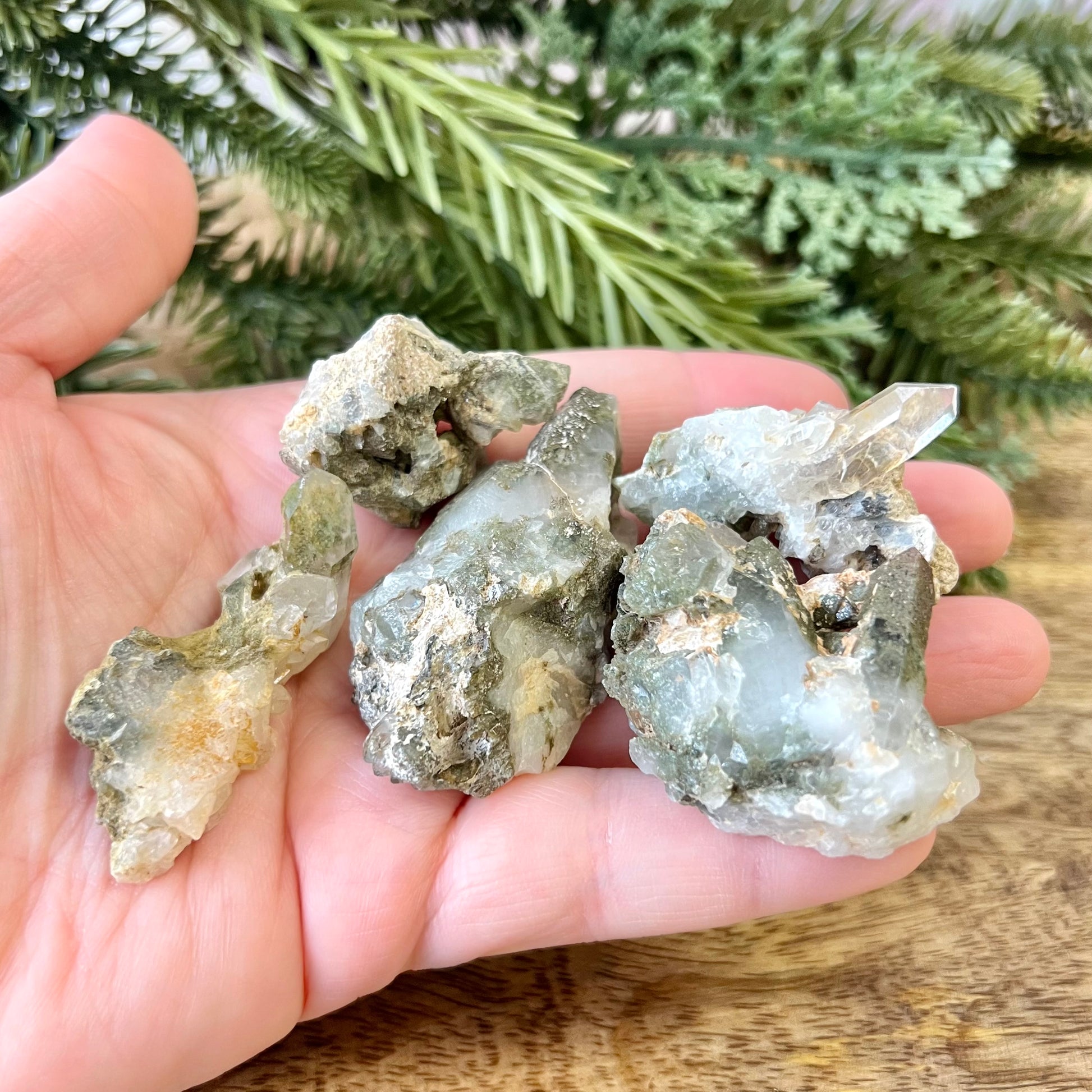 Enhance your spiritual practices with this beautiful Chlorite Quartz natural cluster. This crystal features loamy green inclusions inside the Quartz, giving it a very earthy vibe.