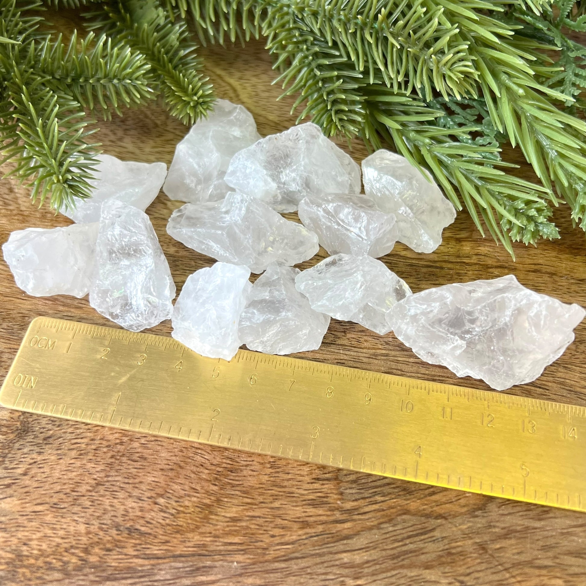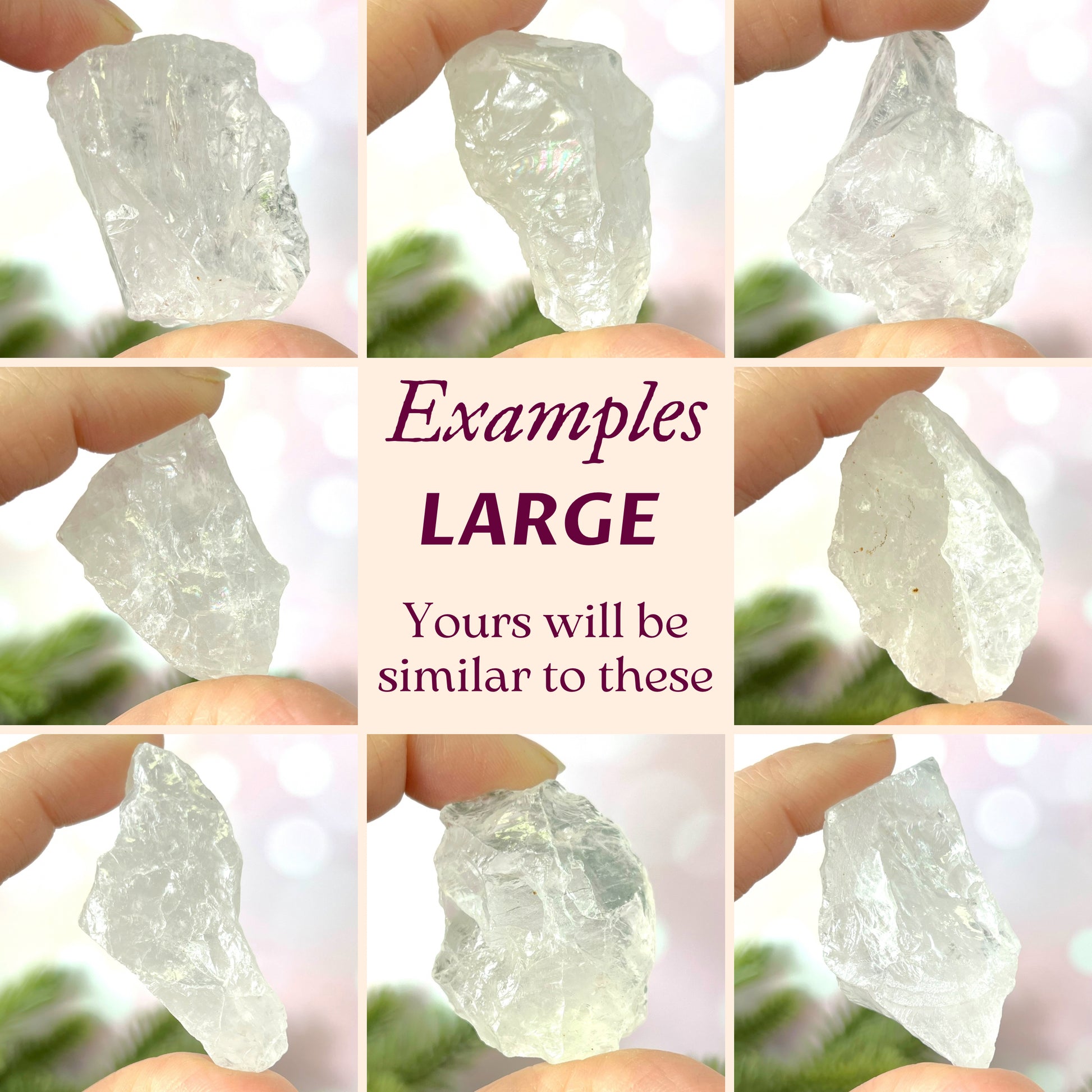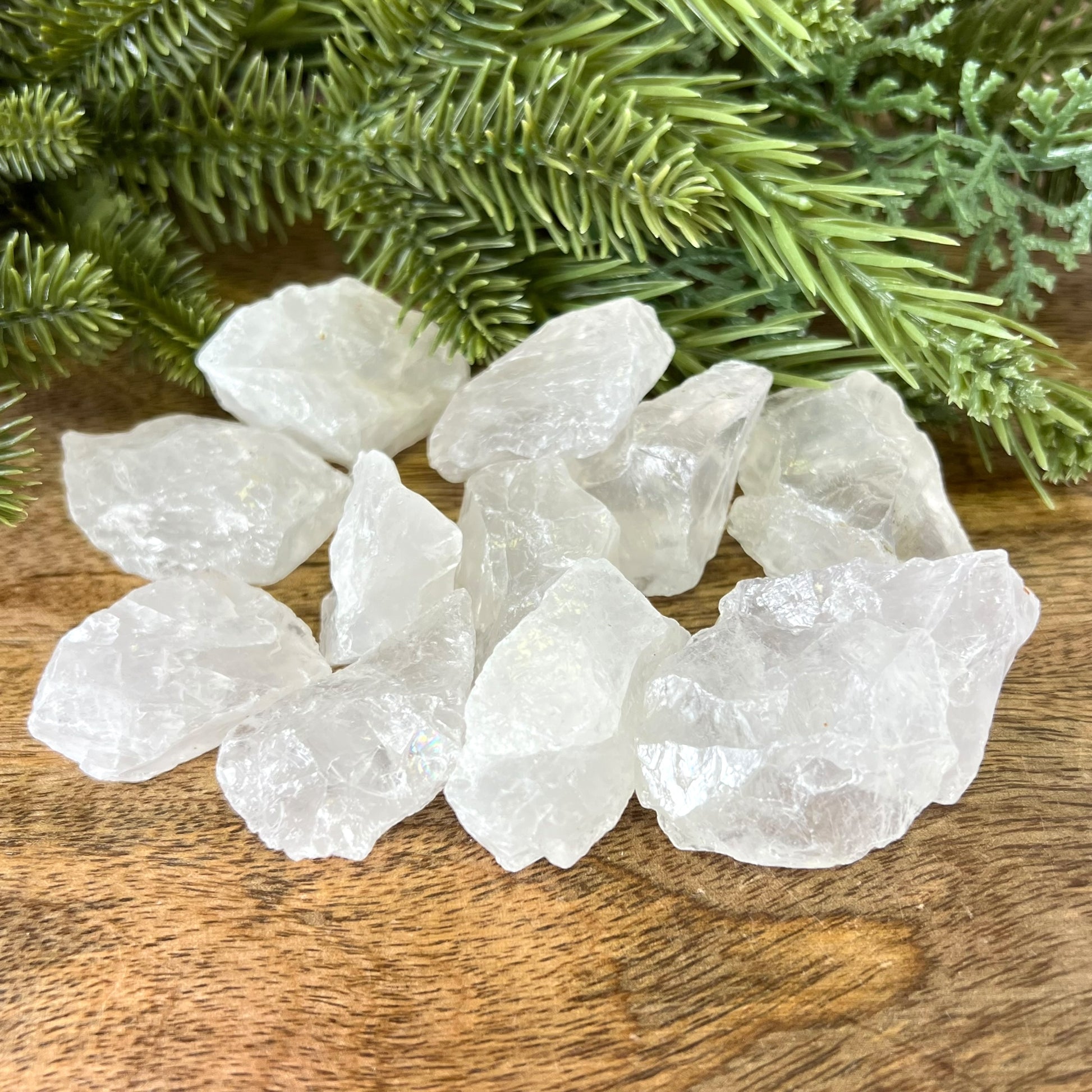 Enhance your spiritual practices with this natural rough clear Quartz specimen. These pieces range from very see-through, to almost solid in color. They're chunks, but we also have points available.