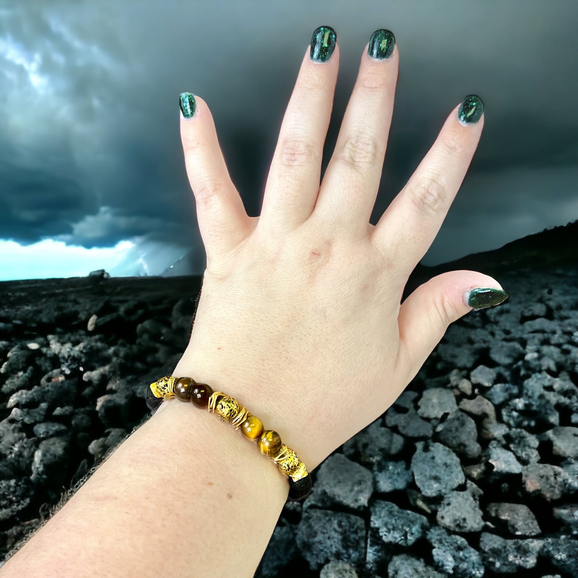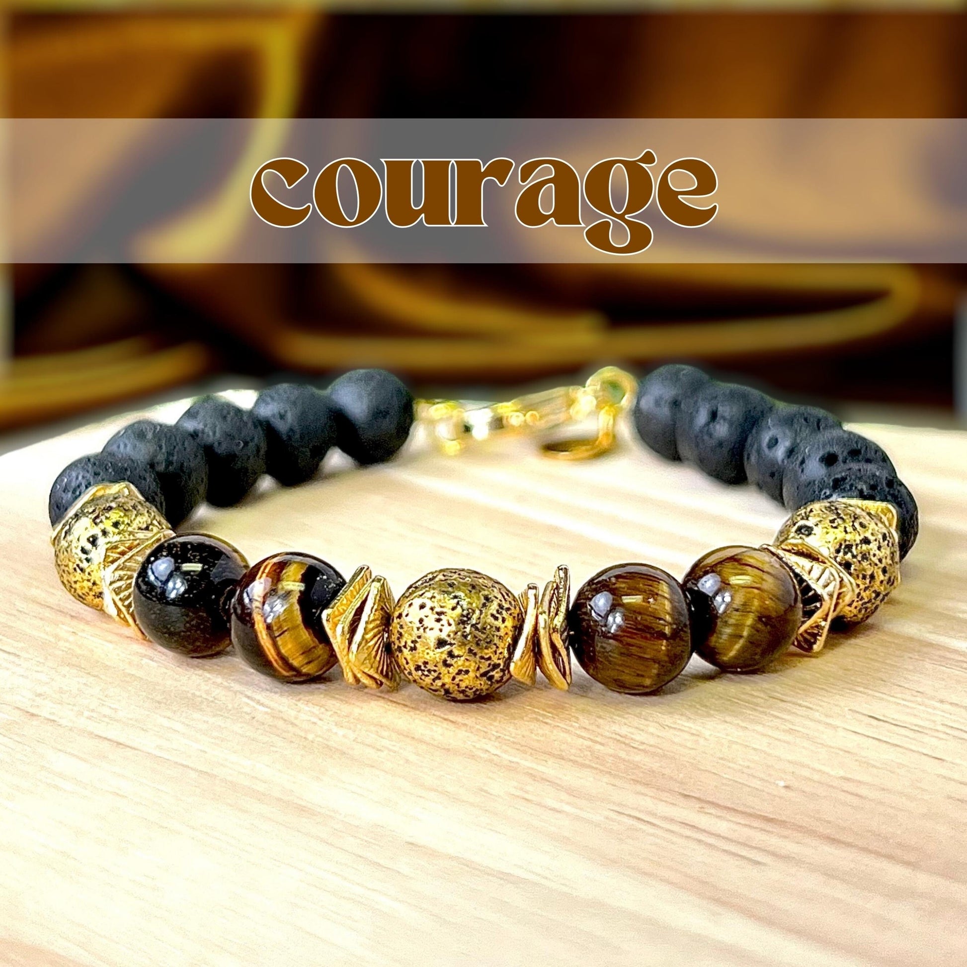 Designed with a blend of crystals to inspire courage. Tigers Eye Stone has long been associated with inner strength, determination, and confidence. Lava Stone is literally the cooled remains of volcanic eruptions, filled with fire and passion, melting any obstacles in its path.